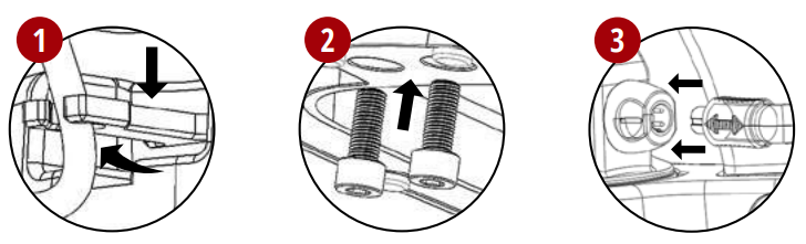- Novietojiet sviras mezgla apakšējo daļu virs stieples vadotnes augšdaļas un saskrūvējiet pamatni un sviras mezglu kopā ar divām skrūvēm. Pārliecinieties, vai svira ir pareizi izlīdzināta, un pievelciet to.