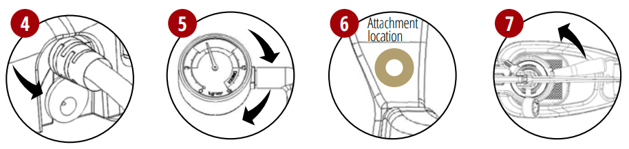 5. Piestipriniet spiediena mērītāju pie kāta, ieskrūvējot to pulksteņrādītāja virzienā. Ieskrūvējiet pilnībā, pēc tam pavērsiet mērītāja virsmu vertikāli.