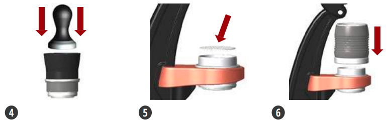 5. Pievienot Dispersion Screen pie Portafilter — pievienot Portafilter pie PRO 3 kadra un novietot ekrānu virsū.