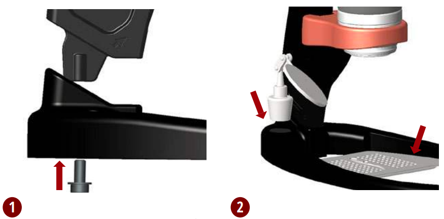 - Atiestatiet virzuli, izmantojot dozēšanas krūzīti. Novietojiet cilindru virs dozēšanas krūzītes un nospiediet uz leju.