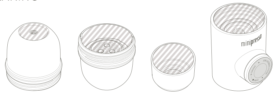 - Nelieciet nevienu MiniPresso detaļu trauku mazgājamajā mašīnā.