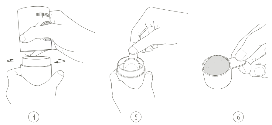 14. Novietojiet MiniPresso virs krūzes un sāciet sūknēt. Pirmie 6 gājieni piepildīs filtra grozu ar ūdeni. Turpiniet sūknēt, līdz kafija vairs netek.