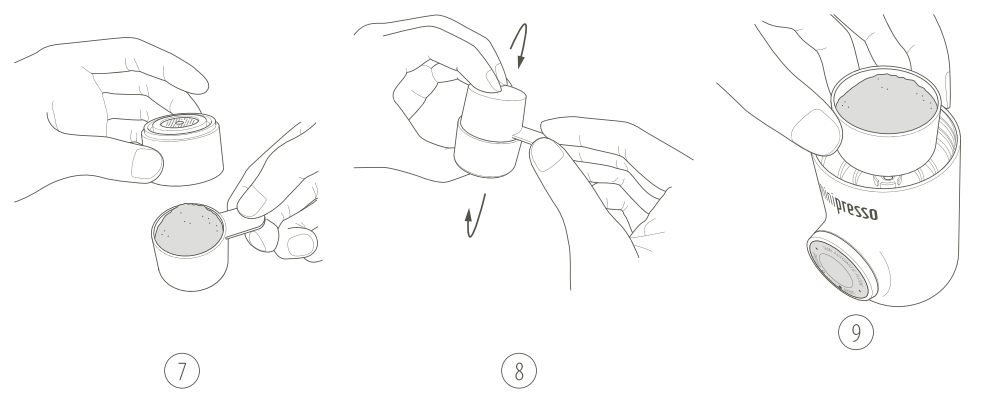 - Nepiepildiet filtra grozu līdz malai ar sablīvētu maltu kafiju.
