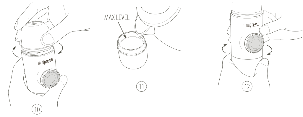 - Minipresso izmantojiet tikai tīru ūdeni. Nelietojiet citus šķidrumus.