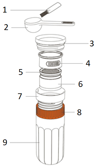 - Paredzēts divām tējkarotēm maltas kafijas (2x8 g). Nespiediet kafiju.